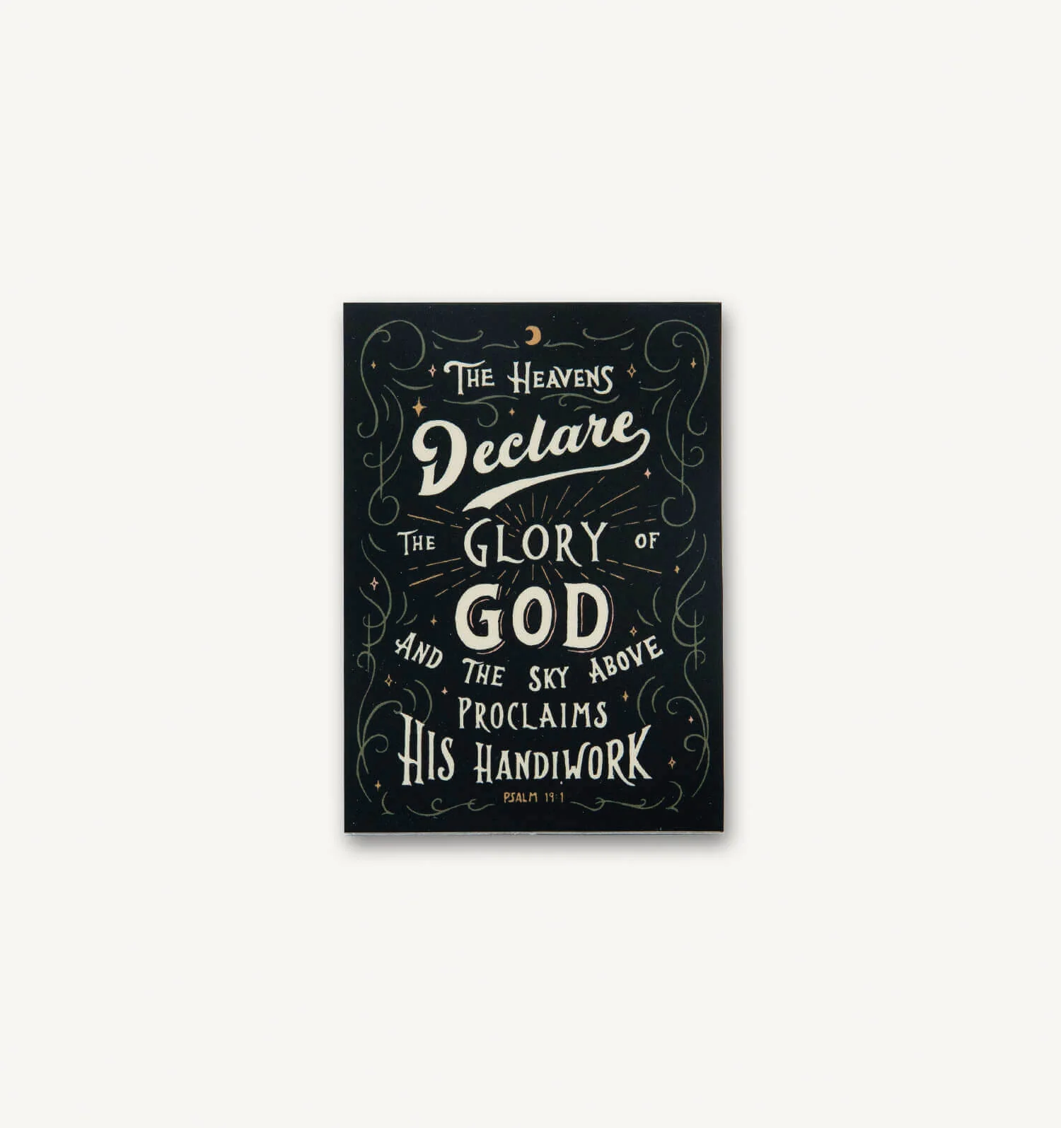 Featuring our design of Psalm 19:1, this sticker is ready to adorn a journal, laptop, car, water bottle, or just about anything, really.