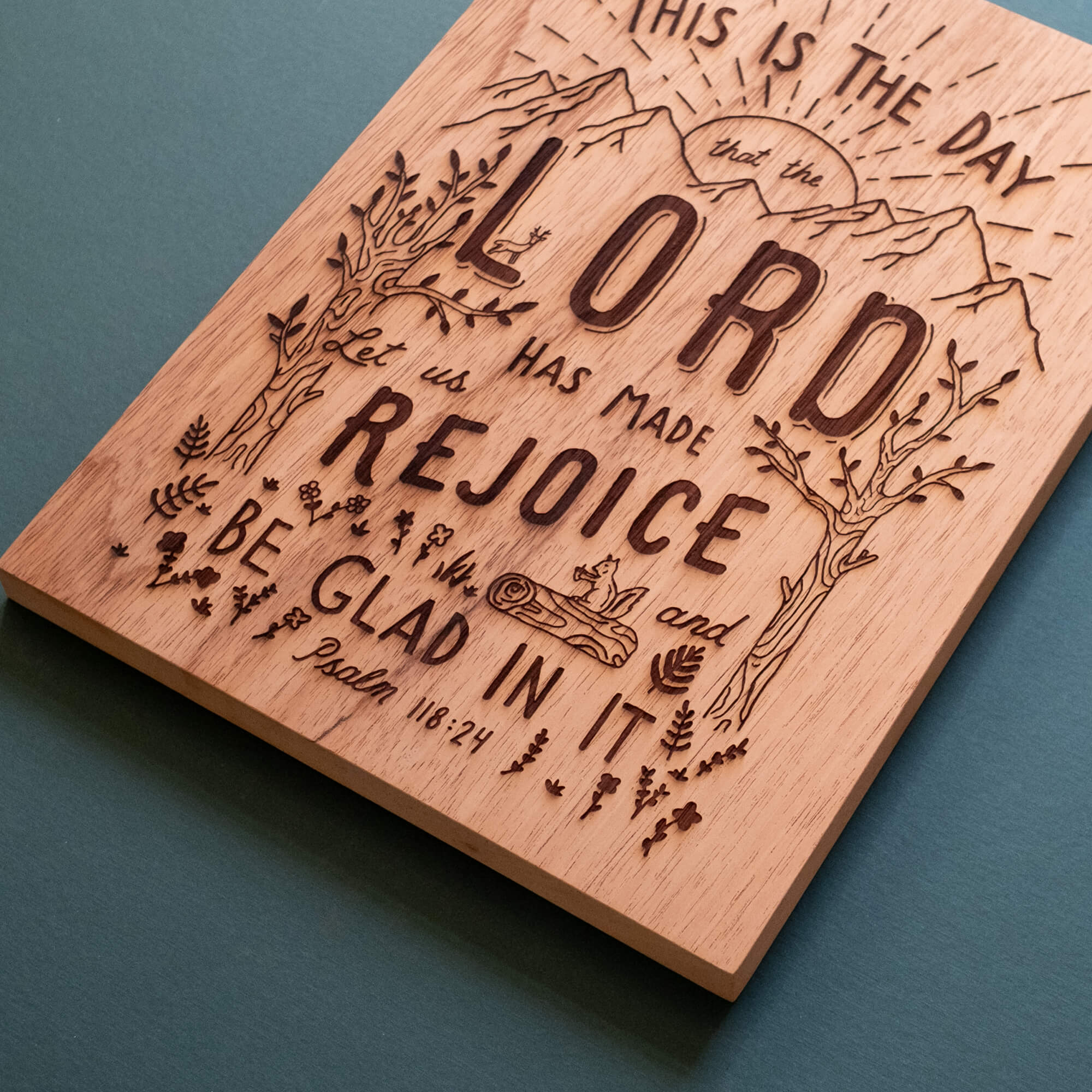 Part of our legacy wood collection, this piece of art is handcrafted from local, salvaged timber and laser-burned with our original hand-drawn design of Psalm 118:24.